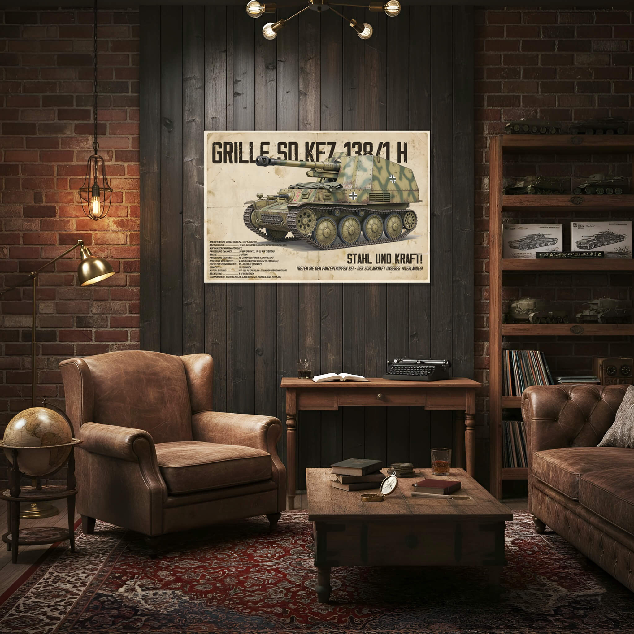 Grille Sd.Kfz. 138/1 WWII German Self-Propelled Gun Tank Vintage Museum Art Illustration