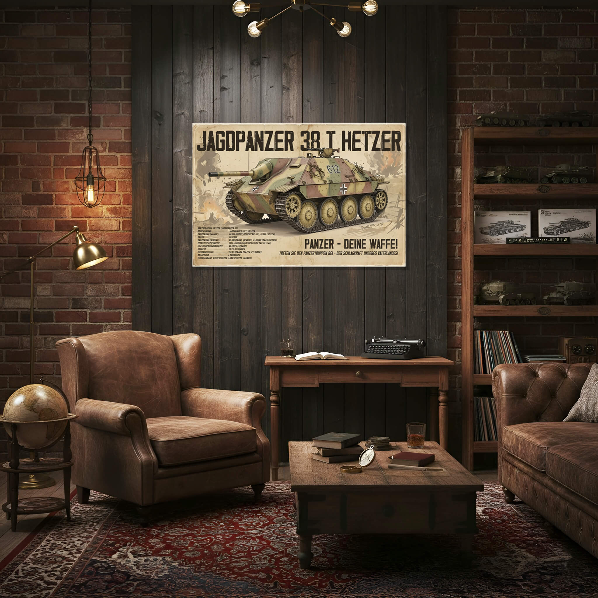 Hetzer Jagdpanzer 38 WWII German Tank Destroyer Vintage Museum Art Illustration