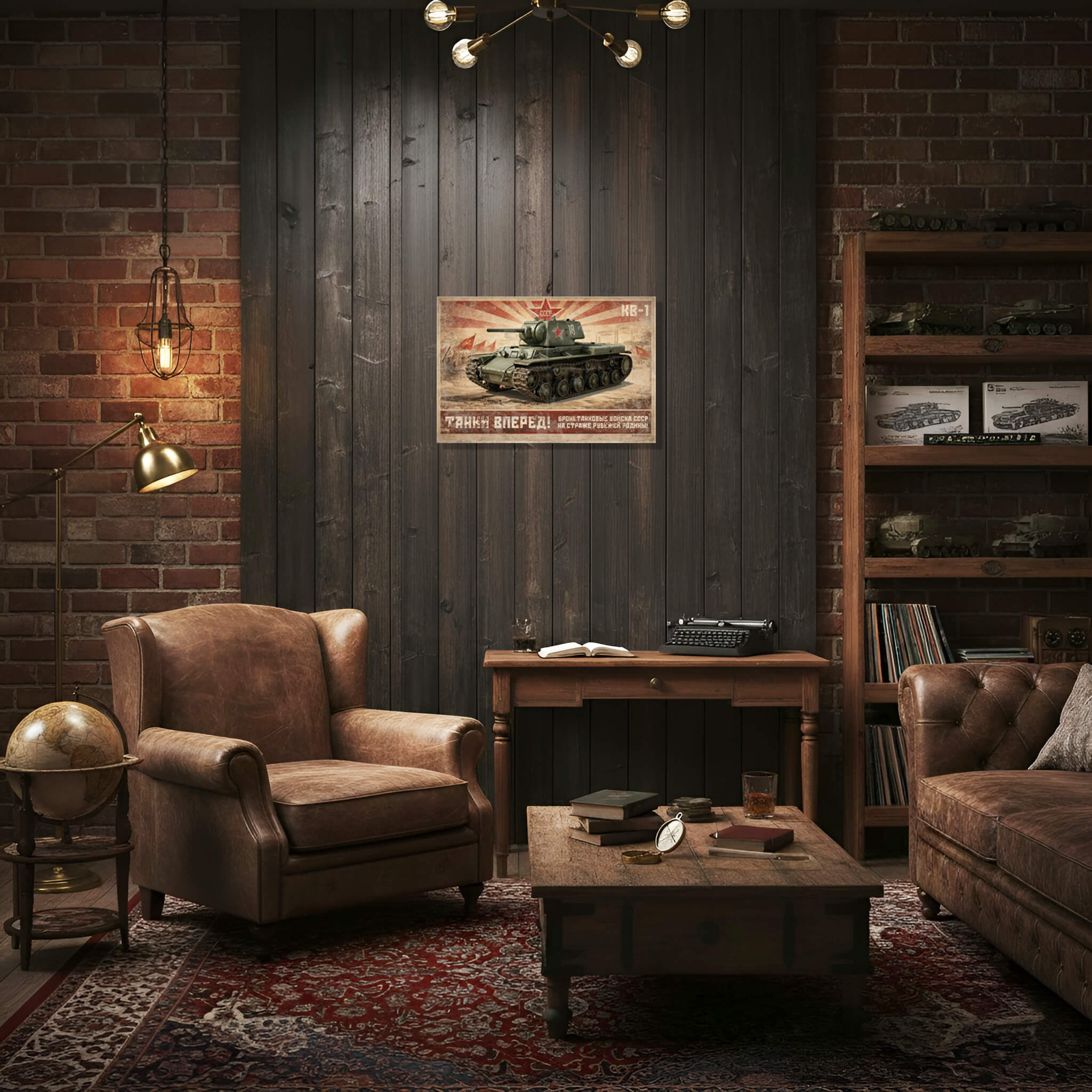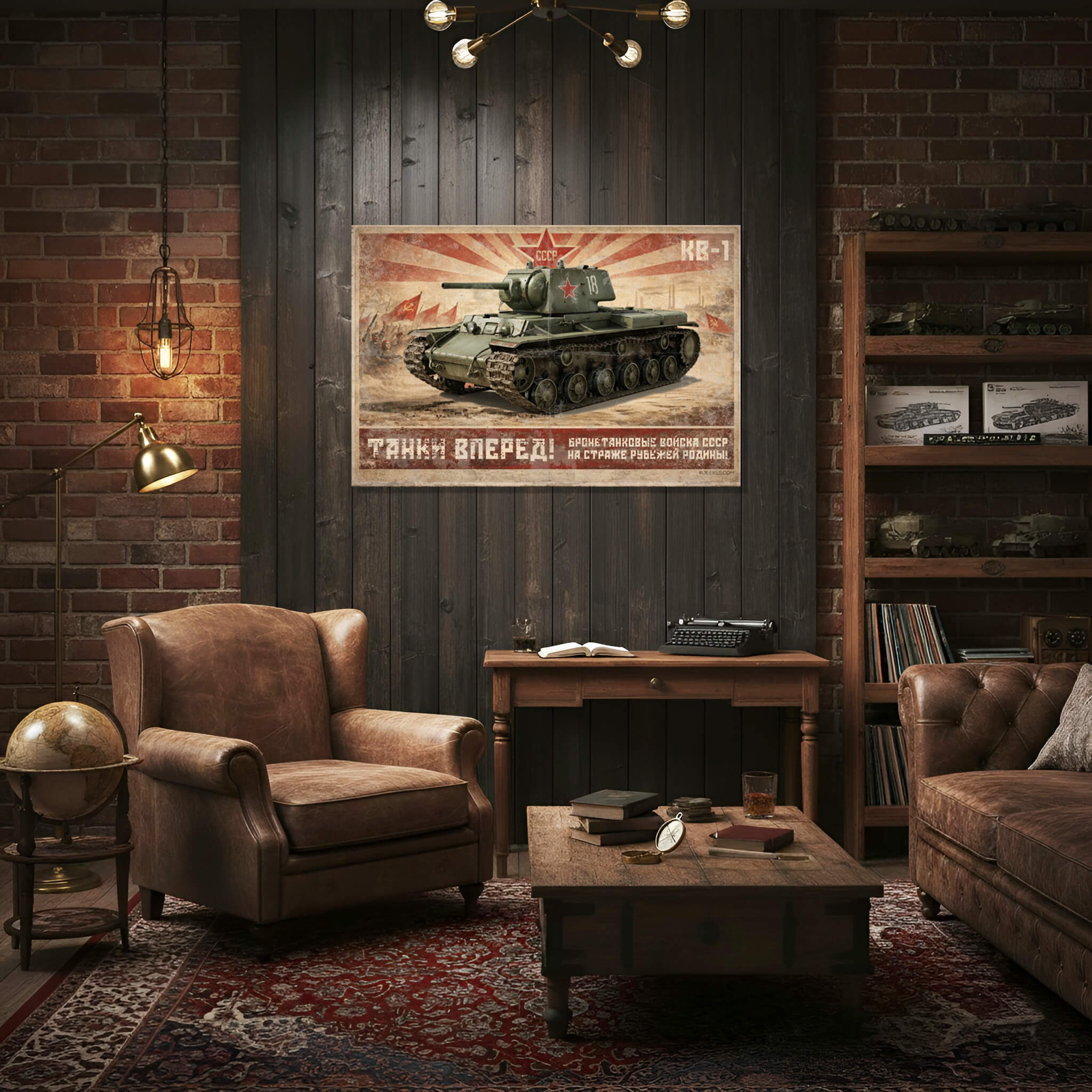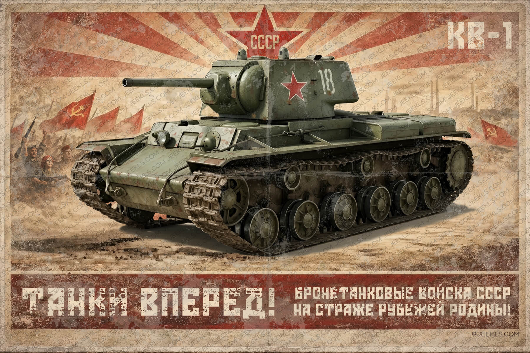 KV-1 Soviet Heavy Tank WWII Red Army Propaganda Poster Vintage Illustration