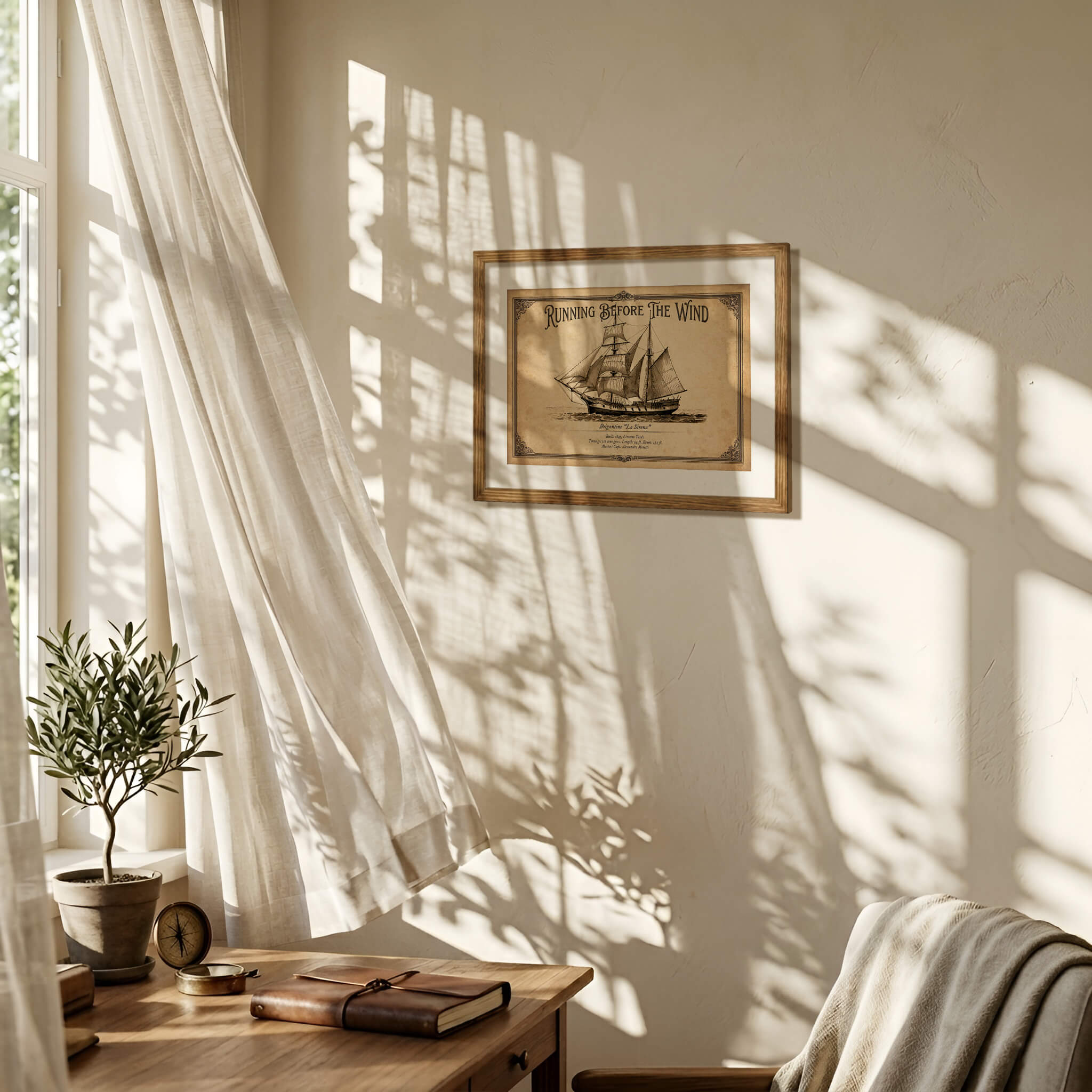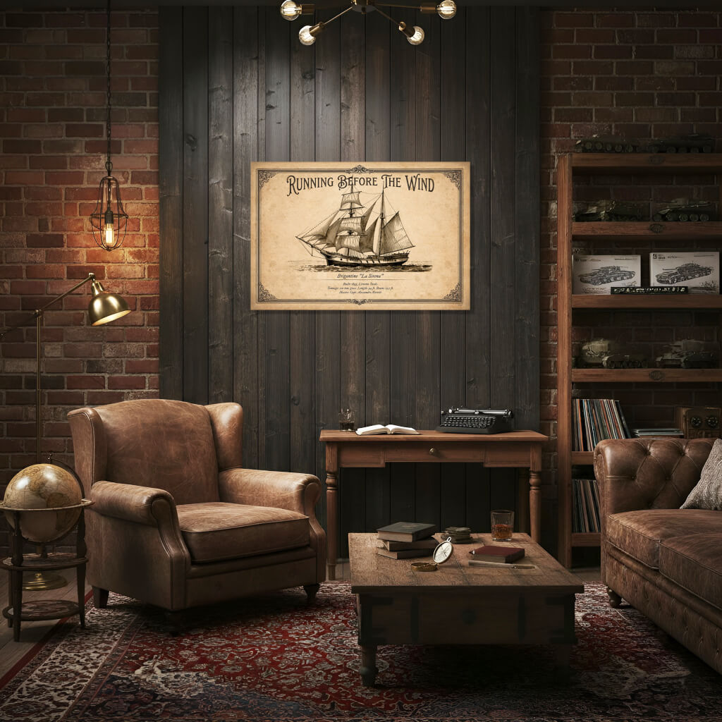 Add a classic Mediterranean brigantine to your collection. The ‘La Sirena’ poster is a detailed depiction of a vessel with a mixed rig, combining the power of square sails with the manoeuvrability of fore-and-aft sails.