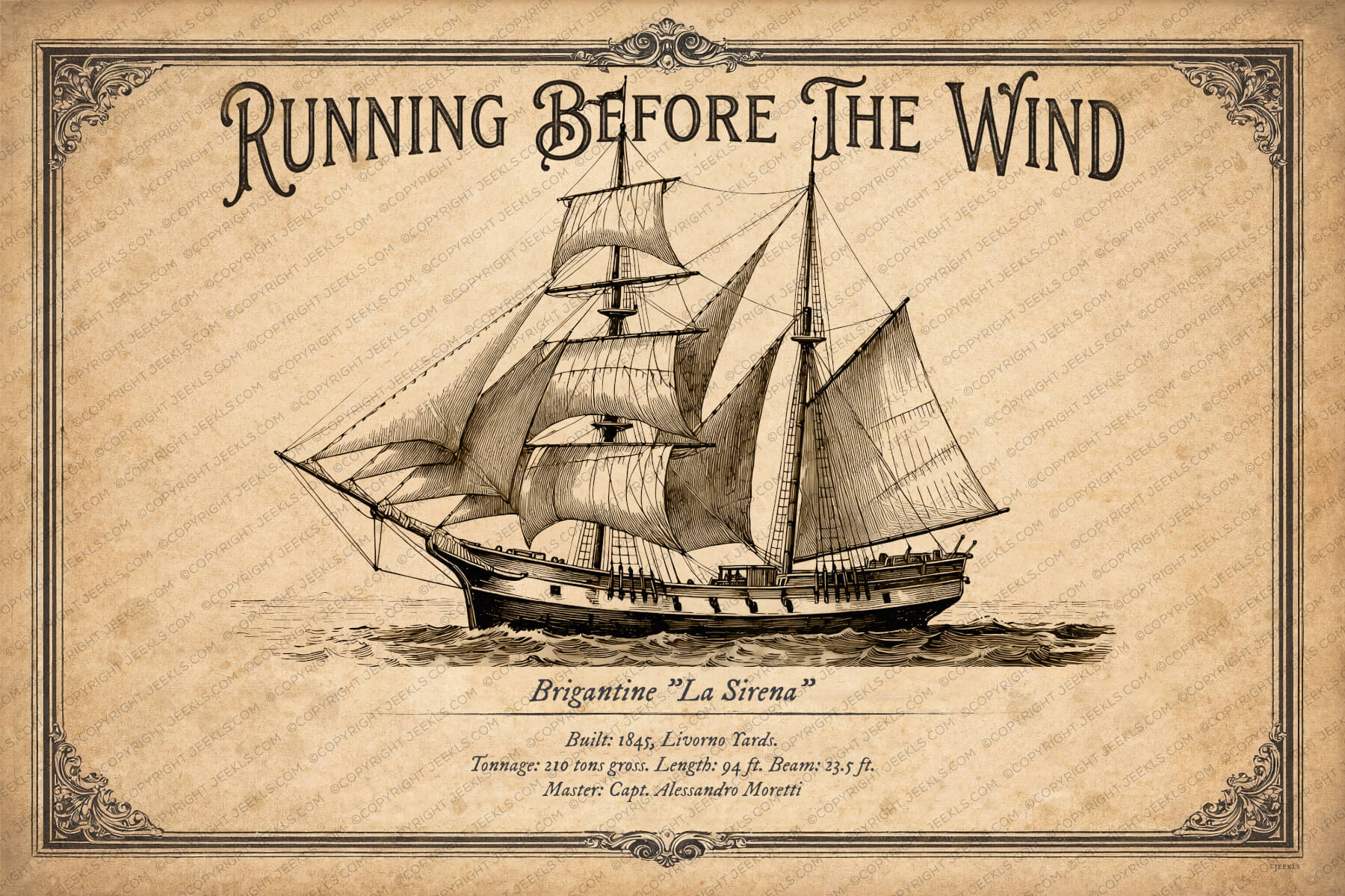 “La Sirena” 1845: Vintage Brigantine Illustration Digital Edition PDF