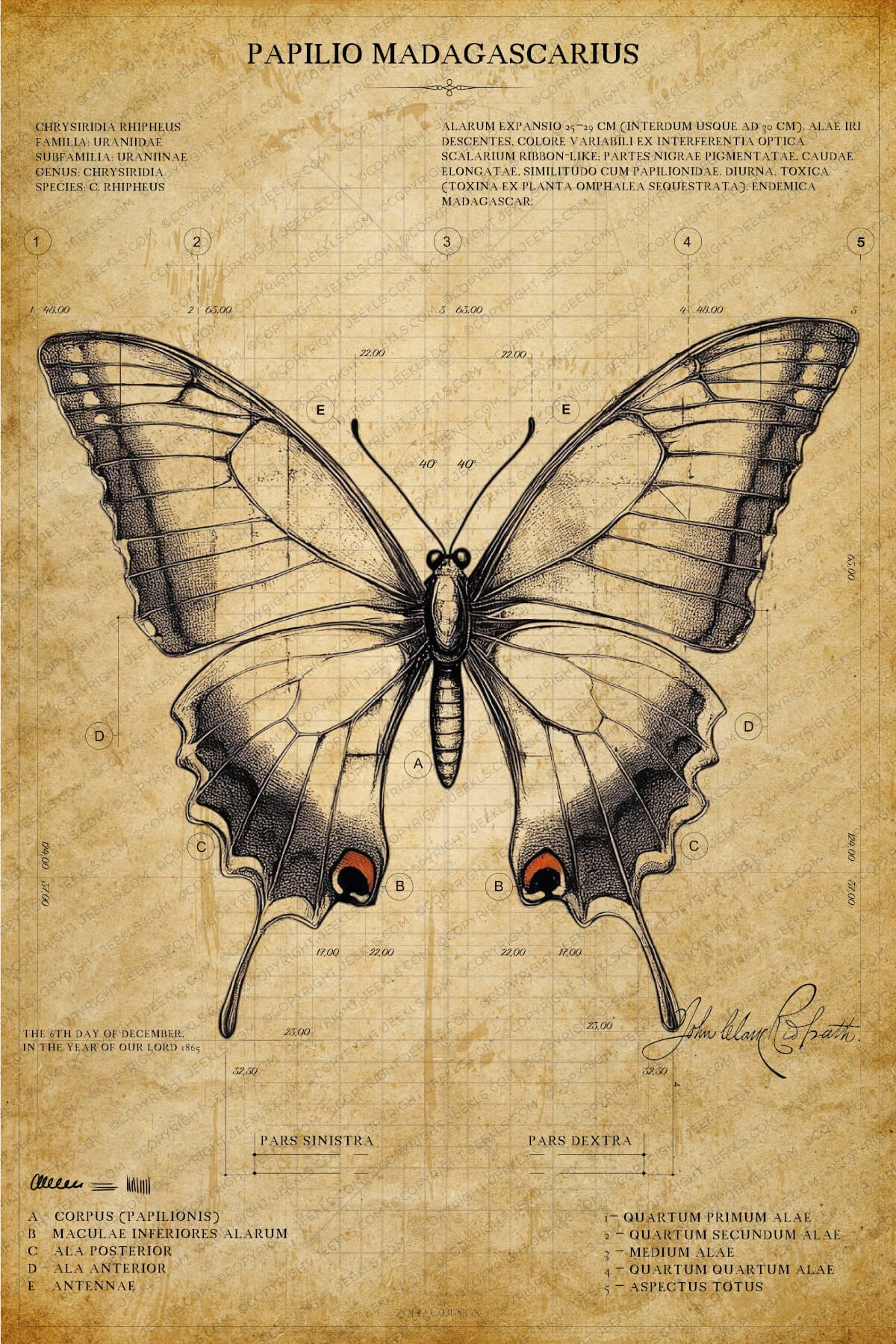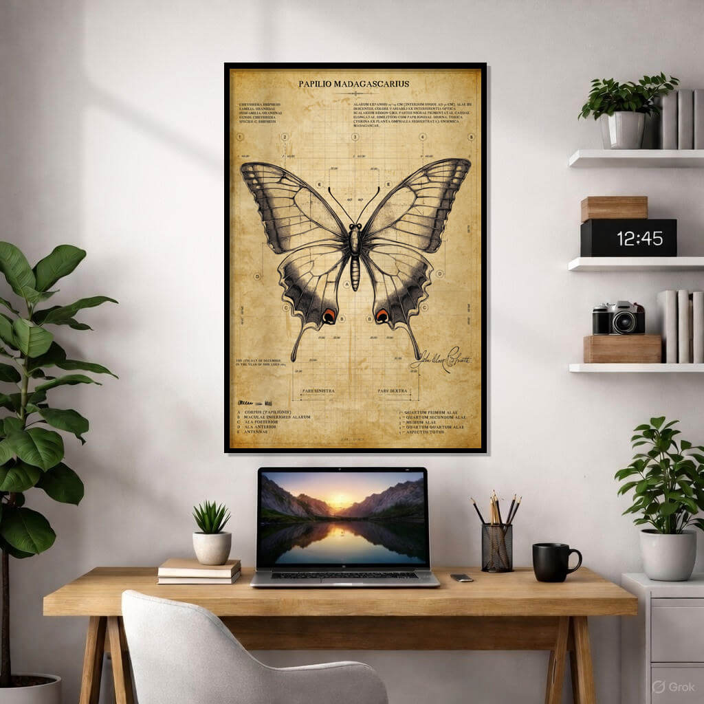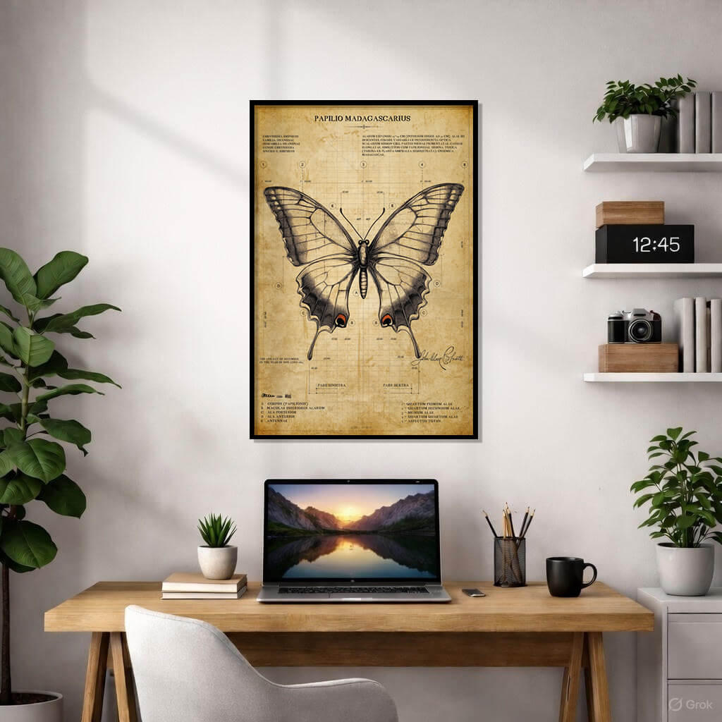 Vintage Butterfly Anatomy Poster – ‘Papilio Madagascarus’ Framed Art