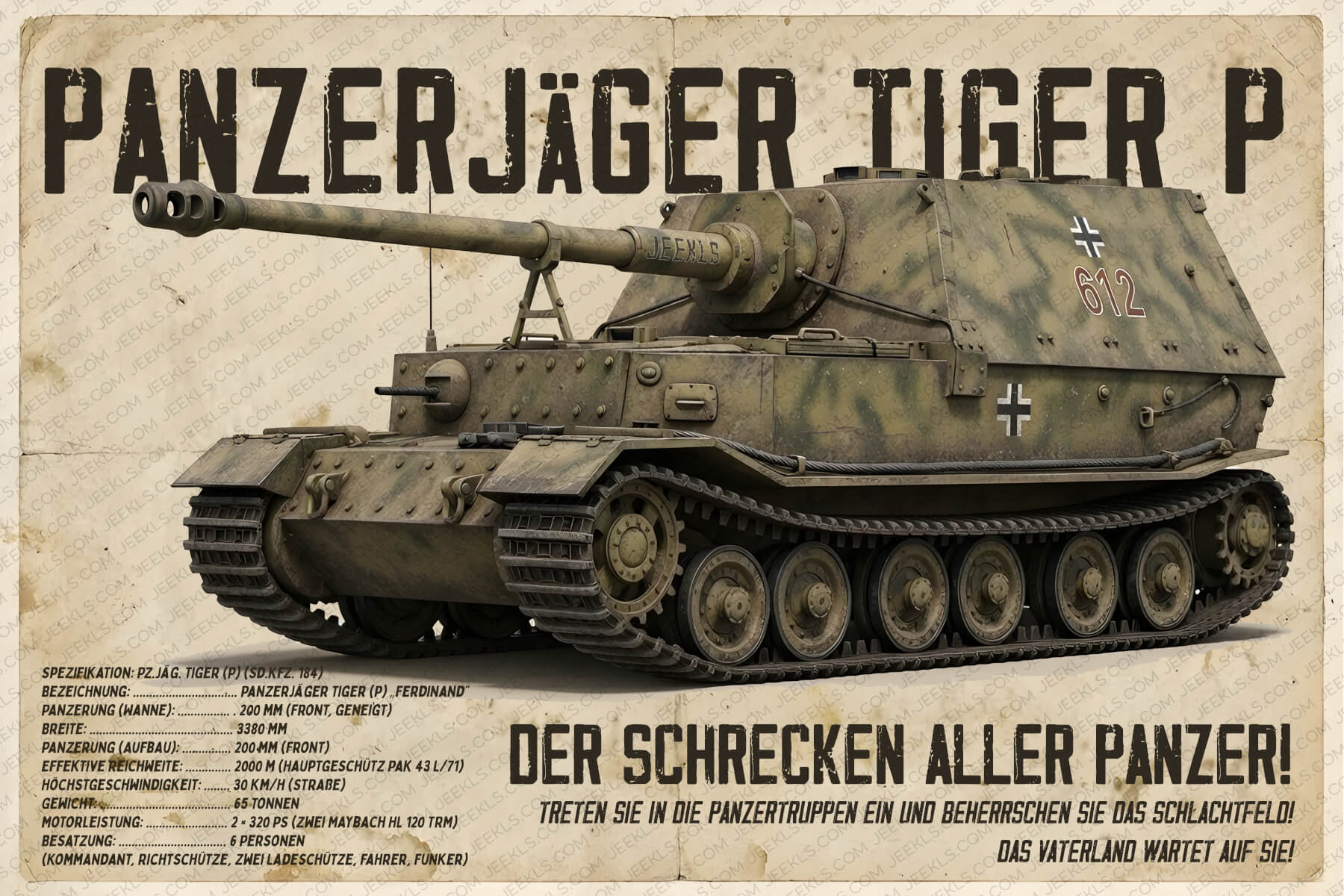 Vintage Ferdinand Heavy Tank Destroyer Propaganda Poster – German WWII Panzerjäger Poster